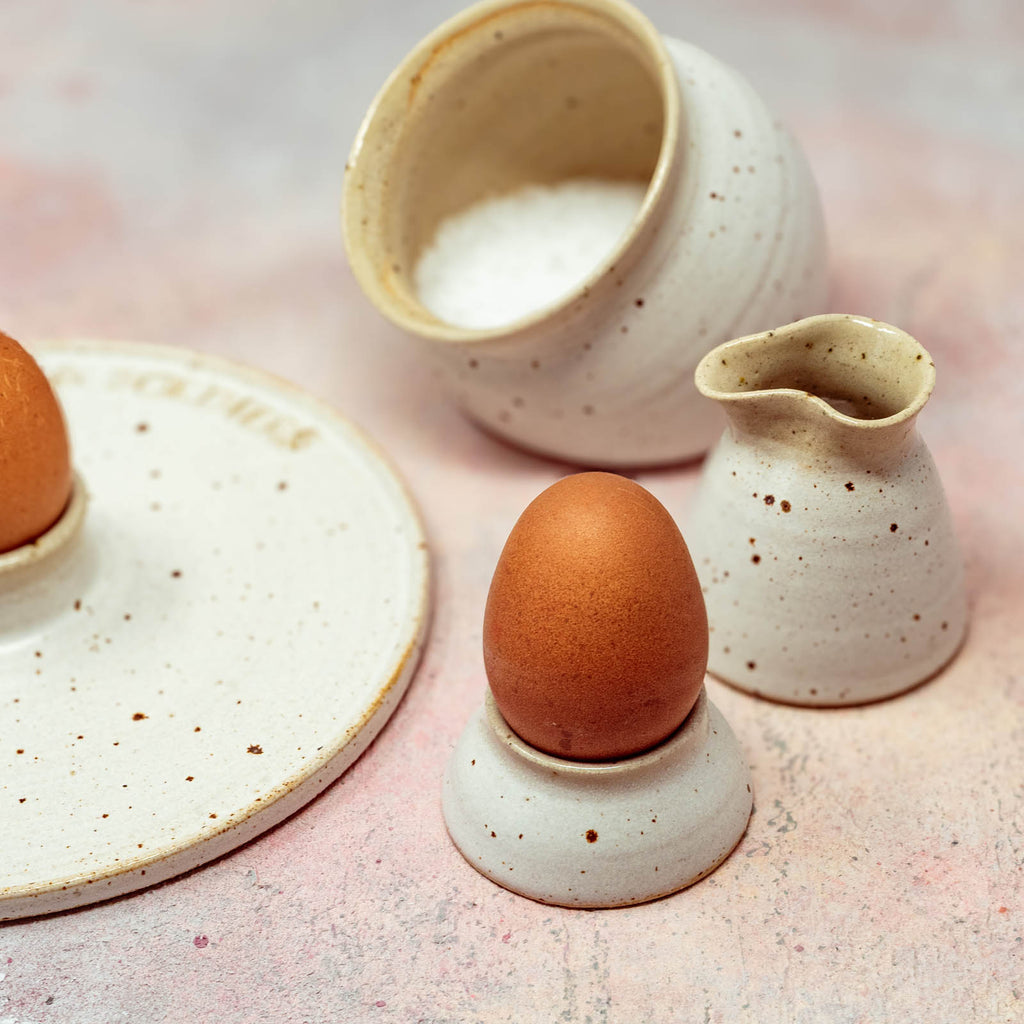 Beautiful hand-thrown Salt Pig our Village Pottery Breakfast Collection. Coupled with a egg cup or egg plate, it makes the perfect gift for an egg lover. Handmade in Somerset, vailable in Satin Snowdrop.
